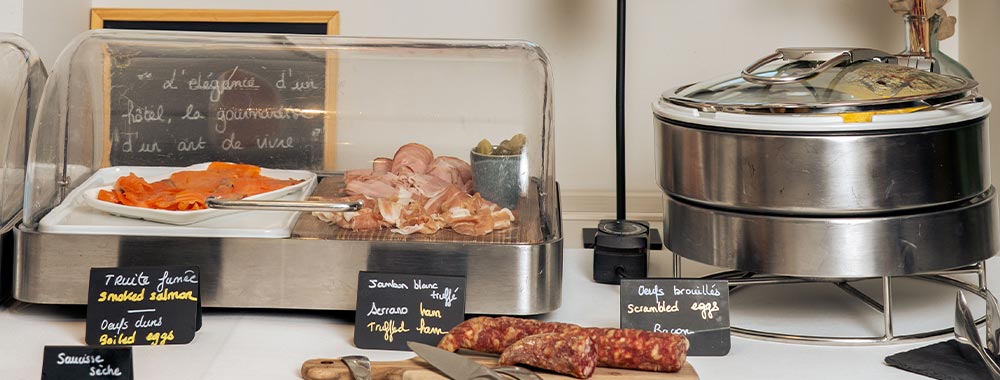 Après une bonne nuit de repos, nous vous accueillerons dès 7h dans notre salle de petit-déjeuner. Vous y découvrirez une délicieuse sélection de produits sains et gourmands, présentés sous forme de buffet. Nous aurons particulièrement à cœur de vous faire découvrir les savoureux gâteaux et yaourts maisons cuisinés par notre Chef.
